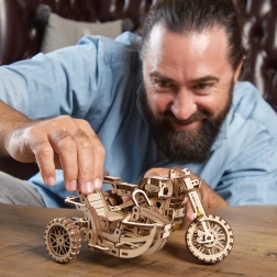 Une fois terminé, vous obtenez un modèle impressionnant de moto avec side-car qui embellira une étagère et ravira tout amateur de technologie.