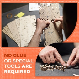 Le montage est précis et ludique grâce à 400 pièces découpées avec précision et un manuel détaillé. Le modèle offre une connexion modulaire – reliez de deux à quatre pistes pour créer un ensemble mécanique synchronisé, plein de dynamisme et idéal pour les défis entre amis.