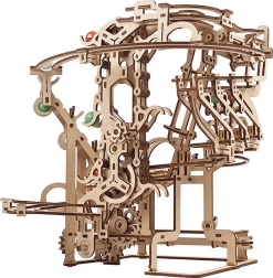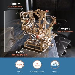 Cette piste de billes sophistiquée en contreplaqué de qualité allie plaisir de modélisme, valeur éducative et spectacle relaxant. L’ascenseur à chaîne à entraînement manuel amène les billes en douceur au point de départ, d’où elles s’élancent sur trois sections distinctes, chacune avec un obstacle principal unique. Le design ouvert met en valeur la mécanique fonctionnelle et les détails raffinés.