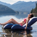 Grâce à la feuille de PVC robuste d’une épaisseur de 0,45 mm et à ses deux chambres à air, le transat est stable, sûr et résistant à un usage extérieur courant. La valve Boston accélère le gonflage et le dégonflage, et les poignées pratiques facilitent le transport. Un patch de réparation est inclus.