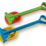 Set pour enfants comprenant une pelle et un râteau en plastique coloré, idéal pour les petits jardiniers. Les produits sont fabriqués en plastique et conviennent aux enfants à partir de 3 ans.