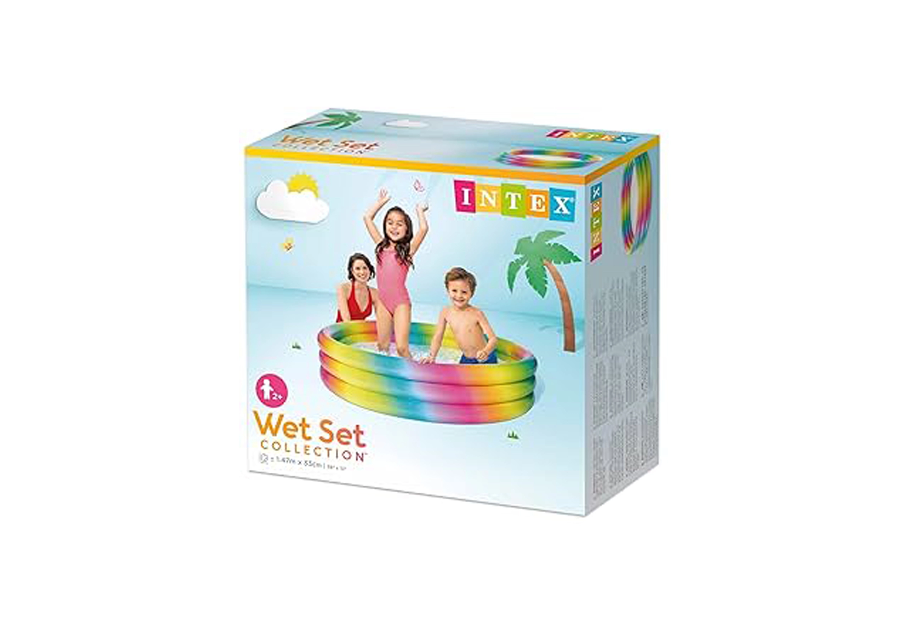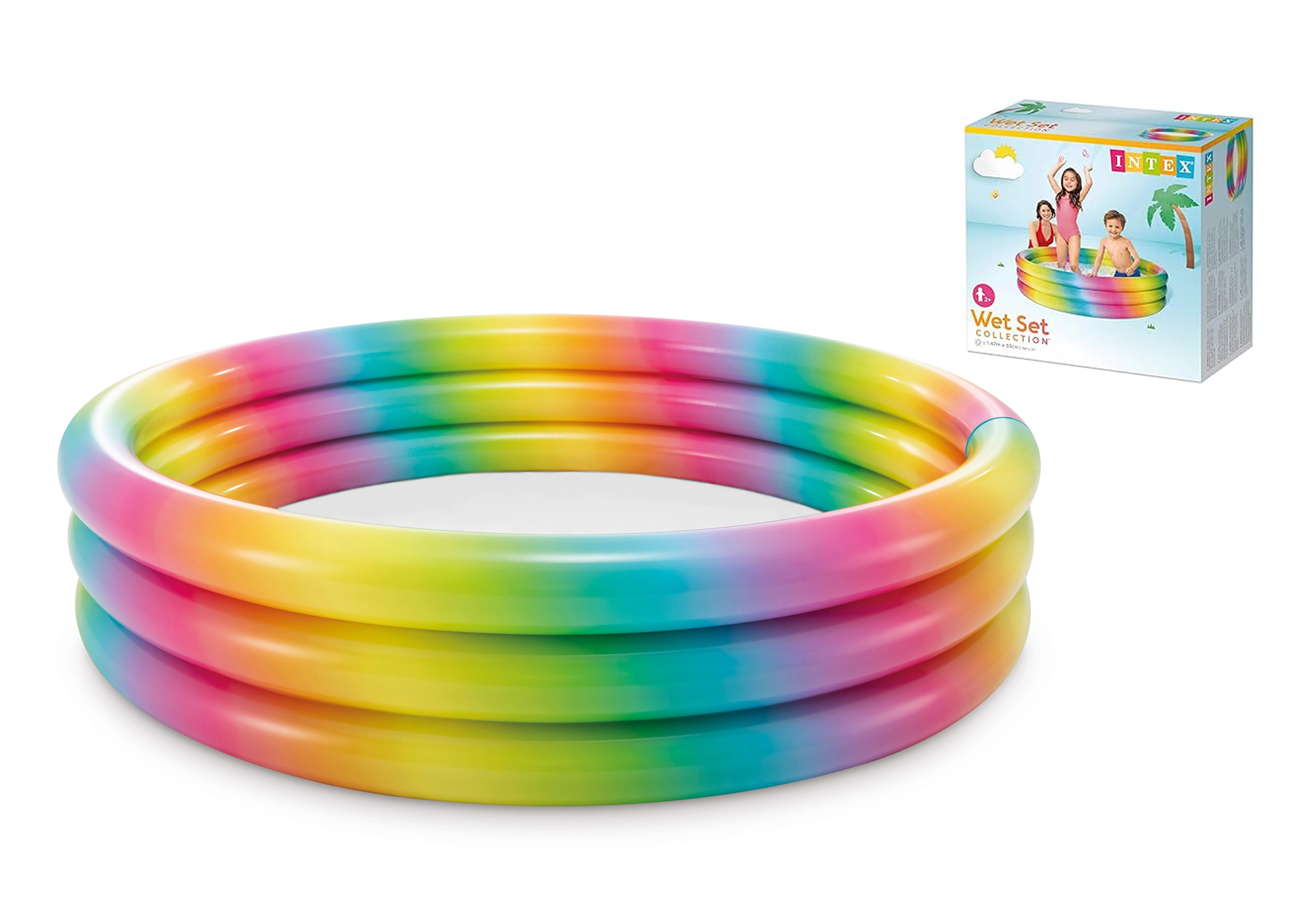 Cette piscine colorée séduit par sa palette arc-en-ciel attrayante, qui émerveillera les enfants et apportera une touche de gaieté à tout jardin.