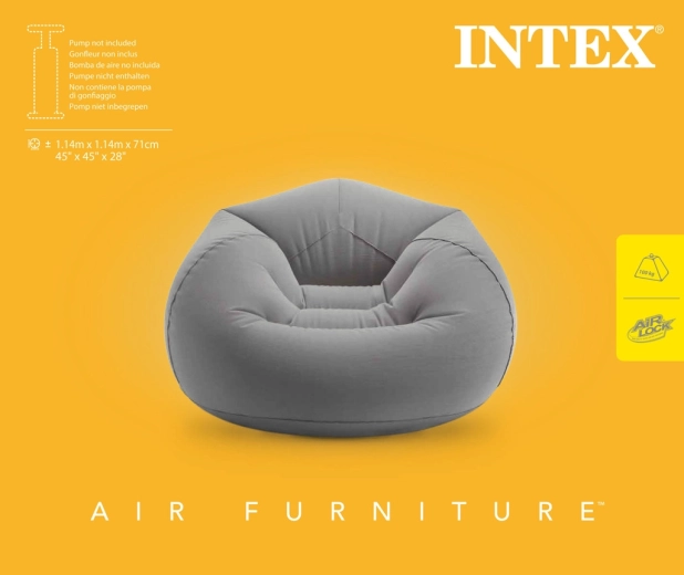 Grâce à sa structure gonflable, ce fauteuil est idéal pour le salon, la chambre d’étudiant, le chalet ou un coin détente au bureau. Il se gonfle et se dégonfle facilement, ce qui permet de le déplacer et de le ranger sans effort. La finition grise s’accorde avec la plupart des décors et met en valeur les lignes épurées d’un intérieur moderne.