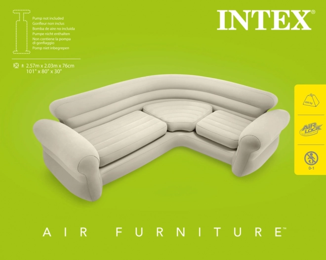Confortable canapé d’angle gonflable en vinyle de qualité, offrant un gonflage facile et un rangement aisé.