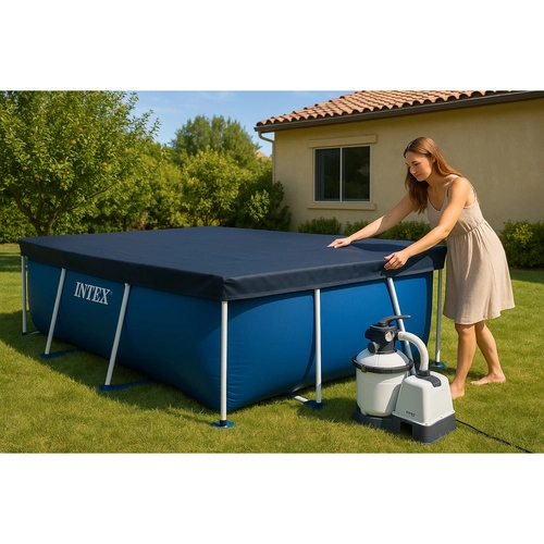 La bâche est conçue pour les piscines rectangulaires à cadre INTEX 300 × 200 cm et adhère sur tout le pourtour pour une efficacité maximale.
