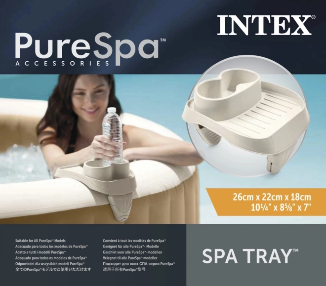 Profitez de la détente sans interruption – le porte-boissons INTEX se fixe rapidement et en toute sécurité sur le rebord du spa et vous offre à portée deux emplacements pour gobelets ou bouteilles ainsi qu’un petit plateau pour des snacks ou votre téléphone. Sa conception robuste en plastique garantit une longue durée de vie et une excellente stabilité même lorsque l’eau ondule.