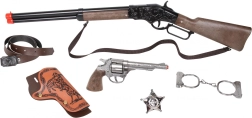 Transformez le jeu d’enfant au Far West en une aventure réaliste. Ce grand set de cow-boy associe un look classique, une conception sûre et des matériaux de qualité. Le fusil et le revolver en métal pour amorces (bandes de 8 coups) procurent un effet sonore que les enfants adorent, tandis que les menottes et l’étoile de shérif complètent la tenue.