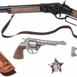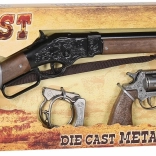 Set de cow-boy – fusil, revolver, menottes et étoile de shérif pour amorces