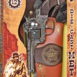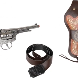 Le set de jeu cow-boy est idéal pour tous les petits aventuriers amoureux du Far West. Le set contient un revolver à amorces et une étoile de shérif en cuir.
