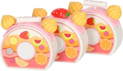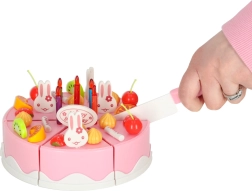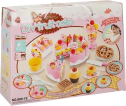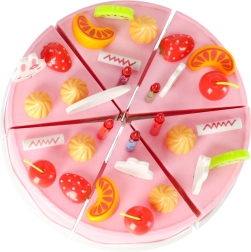 Un joyeux set rose avec un gâteau à découper ravira les petits pâtissiers dès 3 ans. Le gâteau en 6 parts est assemblé par des bandes auto-agrippantes et peut être découpé avec un couteau en plastique. La riche sélection de fruits, décorations et ustensiles stimule l’imagination, les jeux de rôle et la motricité fine.