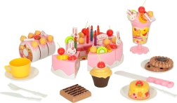 En plus du gâteau, il comprend des biscuits, des roulés, un cupcake, une coupe pour glace et des ustensiles – tout pour un jeu de fête réaliste.