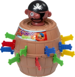 - Règles en bref : placez le pirate dans le tonneau, tournez, distribuez les épées, les joueurs les insèrent à tour de rôle – celui chez qui le pirate saute a perdu. Gagne celui qui insère toutes ses épées en premier ou en place le plus avant que le pirate ne jaillisse.