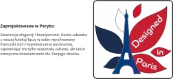 Le jouet est fabriqué en bois naturel de qualité avec des bords lisses et des peintures à base d'eau. Les éléments pastel sont attrayants pour les enfants et en même temps intemporels.