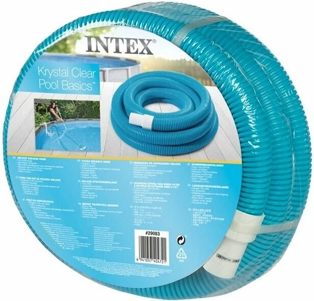 Tuyau universel de la marque INTEX offrant une longueur de 7,6 mètres, ce qui permet un raccordement confortable de l'aspirateur de piscine et facilite le nettoyage des grandes piscines. Avec un diamètre de 38 mm, il est idéal pour le raccordement de pompes de filtration, de pompes à sable, de chauffe-eau ou de générateurs de chlore.