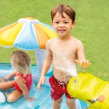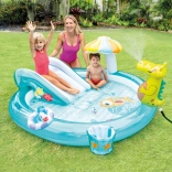 Apportez à vos enfants la joie d'une journée d'été pleine d'eau et de divertissement avec cette piscine gonflable pour enfants de la marque INTEX. Elle est équipée d'un toboggan, d'un anneau de jeu et d'une fontaine en forme de crocodile, assurant un plaisir sans fin pour les jeux aquatiques.