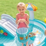 Cette piscine de la marque INTEX comprend des éléments de jeu comme un canard gonflable et un seau de pêche, augmentant le plaisir et la créativité des enfants lors des jeux aquatiques. Un volant gonflable est également disponible, offrant aux enfants la possibilité de jouer à divers jeux.