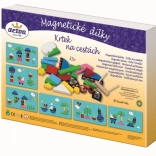 Découvrez le monde magique de Krtek et Myška avec ces pièces magnétiques en bois, idéales pour les petits explorateurs. Chaque pièce est doublée d'un aimant, ce qui permet de les assembler et de créer facilement. Le jeu favorise :