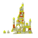 Jeu de construction revisité composé de pièces en bois de différentes formes et tailles dans des couleurs attrayantes jaune et orange. Contient 96 pièces permettant de construire des structures impressionnantes.