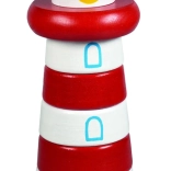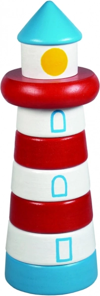 Le phare en bois sous forme de pyramide à empiler invite les enfants à enfiler les pièces sur la tige selon leur forme et leur taille. Le jeu soutient intuitivement la coordination œil–main, la patience ainsi que la perception des couleurs et des formes, tout en stimulant agréablement le toucher grâce à sa surface lisse.