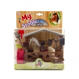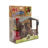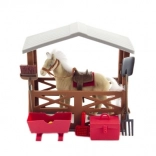 Le coffret comprend une écurie et des accessoires tels qu’un seau, un balai, une fourche, une pelle et une mallette avec fournitures – tout pour des scènes de ferme authentiques.