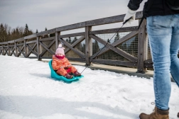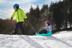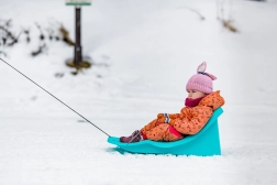 Les luges incluent une ceinture de sécurité qui assure que l'enfant reste en place pendant la glisse.