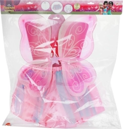 Grandes ailes roses avec motifs blancs rappelant un véritable papillon. Parfaites pour les costumes et jeux de déguisement.