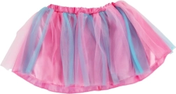 Jupe colorée avec accents bleus et violets, idéale pour danser et s'amuser.