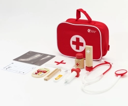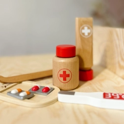 Le set de Classic World contient tout ce qu'un petit médecin a besoin pour jouer au médecin. Les enfants peuvent écouter le battement de cœur de leurs patients (oursons en peluche, poupées) avec le stéthoscope, 'mesurer' la température avec le thermomètre, 'injecter' ou administrer les médicaments nécessaires. Jouer au médecin n'est pas seulement un jeu de rôle aimé, mais aussi une leçon d'empathie et de coopération, ce qui est très important pour les relations sociales. Ce set encourage le développement de l'imagination et l'apprentissage de la résolution de problèmes.