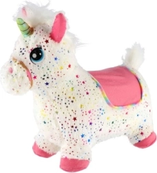 Le cheval sauteur licorne est un excellent compagnon pour les premiers pas et le jeu actif. Son corps stable en caoutchouc résistant et sa housse en peluche lavable avec étoiles colorées garantissent confort et hygiène. Les oreilles servent de poignées, permettant à l’enfant de se tenir en sécurité et de sautiller joyeusement à la maison comme à l’extérieur sur des surfaces souples.