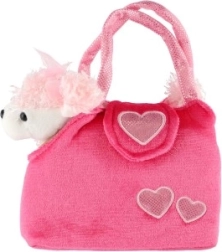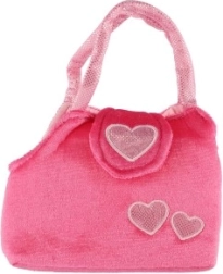 Le sac rose joyeux avec des cœurs et le chien tout doux avec un petit nœud feront plaisir à toute petite amatrice d’animaux.