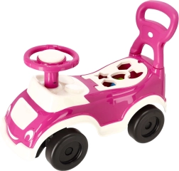 Le porteur multifonction 4-en-1 de Pilsan combine conduite, trotteur, pousseur et jeu éducatif trieur de formes. Il propose un klaxon mécanique, un dossier amovible, un espace de rangement sous le siège et des matériaux sûrs et non toxiques pour un jeu joyeux et sécurisé.