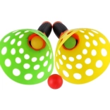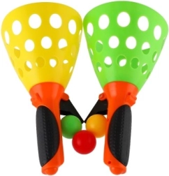 Le set Catch Ball propose un jeu simple mais captivant pour enfants et adultes. Les paniers perforés en plastique léger permettent une bonne circulation de l’air, ce qui facilite la prise et le lancer de la balle. Parfait pour développer agilité, sens de l’observation et esprit d’équipe.