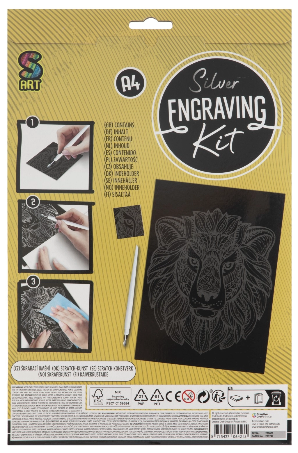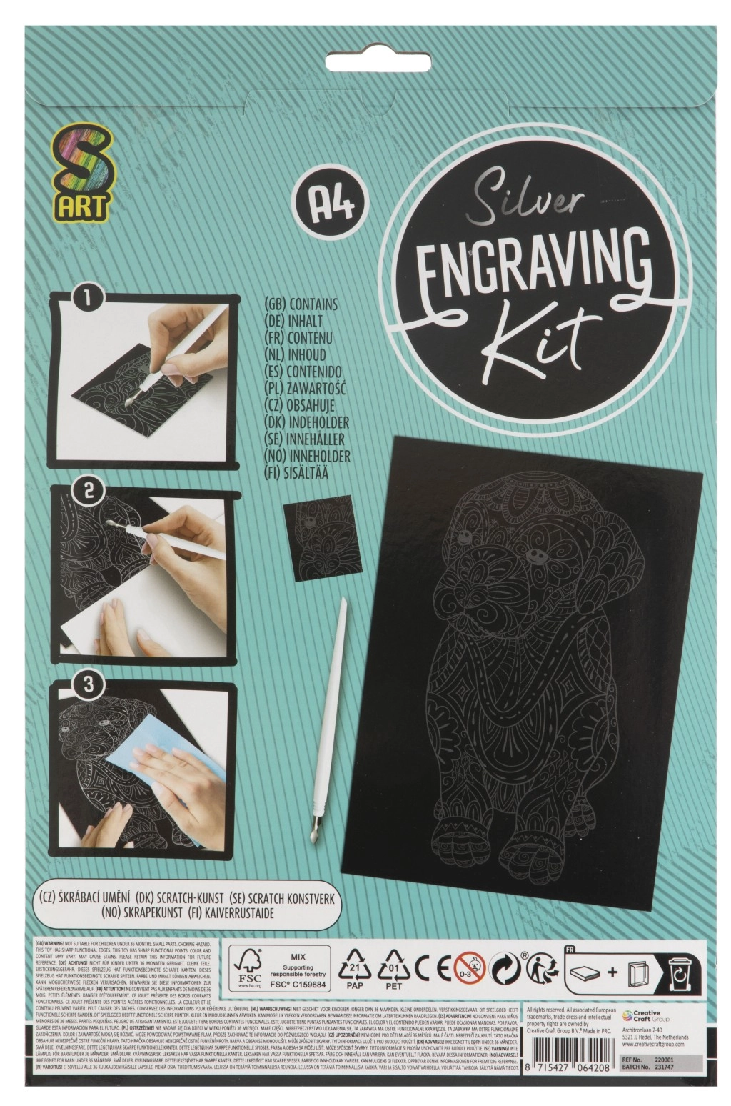 Le kit est un excellent choix pour les enfants dès 7 ans et pour les artistes débutants. Il favorise la créativité, la concentration et la motricité fine. Grâce à l’outil fourni et à la carte d’essai, vous pouvez commencer à créer dès l’ouverture. Le stylet à gratter a une pointe affûtée – la surveillance d’un adulte est recommandée pour les plus jeunes enfants.
