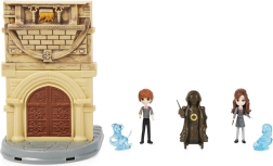 - Set de jeu avec portes et cheminée, 2 figurines (Hermione Granger, Ron Weasley), 2 figurines de Patronus (loutre, terrier), mannequin d’entraînement, autocollants décoratifs