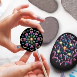 Avec ce kit créatif, réalisez facilement des motifs mandala spectaculaires et des designs lumineux sur des pierres lisses. Grâce à la combinaison d’un fond noir, de peintures métalliques et de strass autocollants, vos décorations se distinguent par un contraste marqué et un bel éclat. La peinture sur galets est une excellente façon de se détendre tout en créant de jolis cadeaux ou des accessoires pour la maison et le jardin.