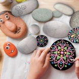 Découvrez un loisir relaxant et créatif avec la peinture sur galets. Le kit GRAFIX offre tout le nécessaire pour créer des mandalas éclatants et des décorations originales – des pierres lisses au pinceau et à la peinture noire, jusqu’aux peintures métalliques et aux strass scintillants pour les finitions. Idéal pour les enfants comme pour les adultes souhaitant développer leur créativité, leur motricité fine et profiter d’une activité apaisante.