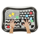 Le tapis d'eau contrasté est conçu pour la stimulation sensorielle des jeunes enfants. Fabriqué en matériau de haute qualité et doté d'un motif en noir et blanc, le tapis offre une stimulation visuelle, tandis que les formes colorées dans le liquide assurent un divertissement interactif. Les enfants peuvent suivre les formes flottant dans l'eau, ce qui les motive à jouer et à se concentrer.