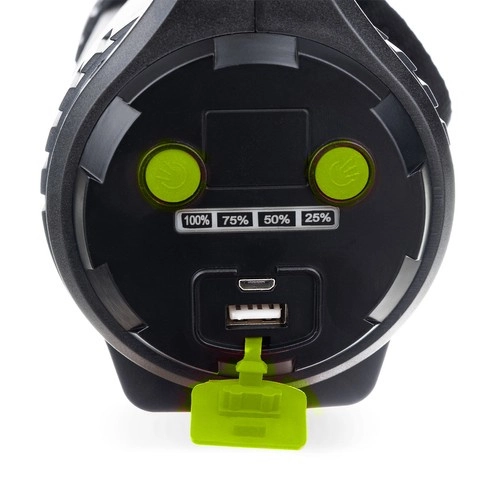 La batterie intégrée 3,7 V / 8000 mAh permet de recharger un téléphone ou d’autres appareils. Le niveau de batterie se vérifie facilement via l’indicateur LED.