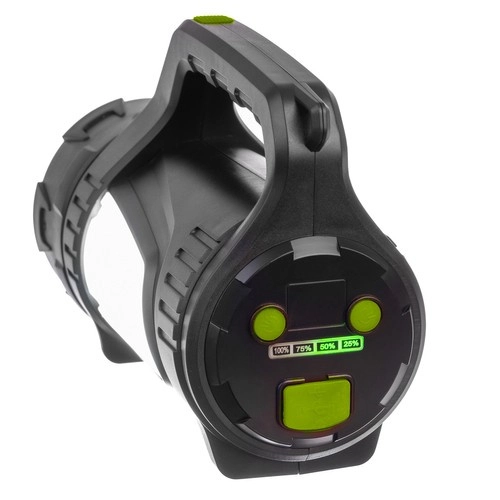 Ce projecteur LED portatif robuste est conçu pour un éclairage fiable en extérieur comme à la maison. Il offre jusqu’à 1200 lumens avec un faisceau concentré pour une portée d’environ 500 mètres et des indicateurs LED d’état de batterie clairs sur le panneau arrière. Sa construction durable est étanche à l’eau et à la poussière; le corps renforcé résiste mieux aux chocs et aux manipulations rudes.