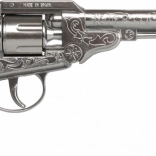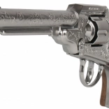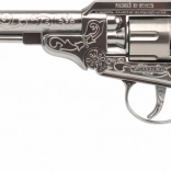 Le revolver de cet ensemble est richement décoré de magnifiques gravures, ce qui en fait un superbe accessoire, mais aussi une pièce de collection stylée.
