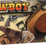 Avec cet ensemble, vous obtiendrez tout ce dont vous avez besoin pour une expérience cowboy parfaite : chapeau, étui pour revolver, foulard, menottes, étoile de shérif et un élégant revolver en argent.