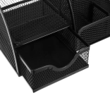 Gardez votre bureau ordonné grâce à un organisateur de bureau compact et robuste en maille métallique d’un élégant noir. Il offre 6 compartiments, un tiroir coulissant pratique et une organisation astucieuse pour stylos, surligneurs, notes adhésives, trombones et ciseaux – idéal pour le bureau, le coin travail à la maison et les études.