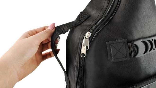 Deux poches frontales – la supérieure pour les petits accessoires (capodastre, câbles, médiators) et l’inférieure pour les partitions au format A4 – gardent tout organisé et à portée de main. Des bretelles réglables et une poignée latérale assurent un transport confortable à pied comme en transports en commun. La fermeture éclair à double curseur facilite l’ouverture rapide et le rangement de l’instrument.