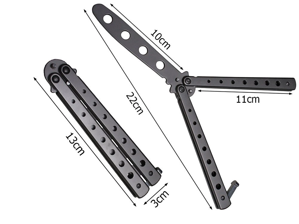 Découvrez une manière ludique et sûre de vous entraîner aux tricks de balisong. Ce papillon possède une lame non coupante et une construction robuste en acier inoxydable, idéale pour la pratique quotidienne sans risque de coupure. Il s’ouvre et se ferme en douceur d’un simple mouvement du poignet.