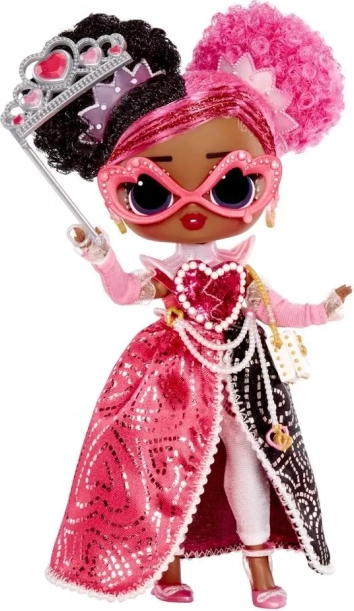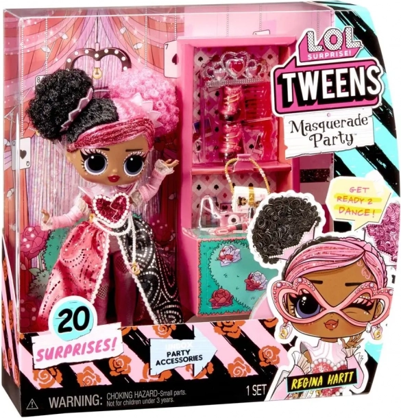 La poupée L.O.L. Surprise Tweens Regina Hartt arrive dans un style rose et noir audacieux avec perles, petits cœurs et détails scintillants. Prête à briller au bal masqué, elle ravira toutes les amatrices d’accessoires, de déguisements et de styling.