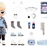 Déballe progressivement accessoires de mode, chaussures, lunettes et autres pépites pour découvrir le look complet de Max Wonder.