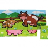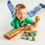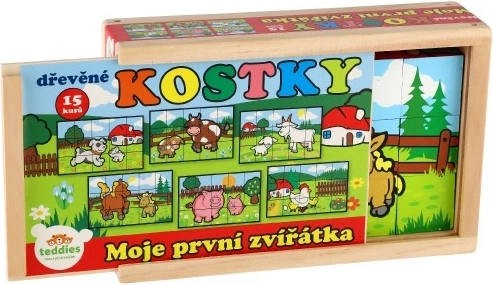 Les blocs en bois avec des images colorées de divers animaux domestiques sont un excellent outil pour le développement des enfants. Lorsque correctement assemblé, l'un des six dessins apparaît, encourageant la réflexion logique et l'imagination chez les plus petits. Pendant la construction et la destruction de tours, les enfants comprennent le principe de l'équilibre et les bases de la cause et de l'effet.