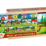 Les blocs en bois avec des images colorées d'animaux domestiques sont un choix idéal pour les tout-petits. Ils aident à développer la pensée logique, l'imagination et la motricité fine.
