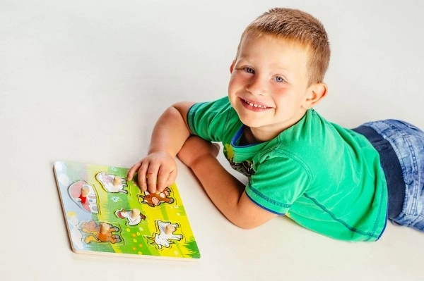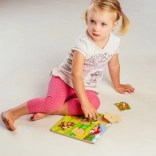 Chaque pièce du puzzle est munie d'une petite poignée en bois, permettant aux enfants d'exercer facilement la prise en main et le placement des pièces au bon endroit.