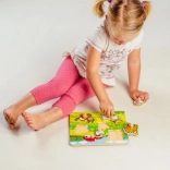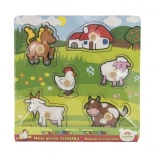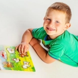 Le puzzle en bois de la ferme est le jouet idéal pour les jeunes enfants, qui développe la motricité fine et la reconnaissance des animaux grâce à des pièces colorées avec des poignées.